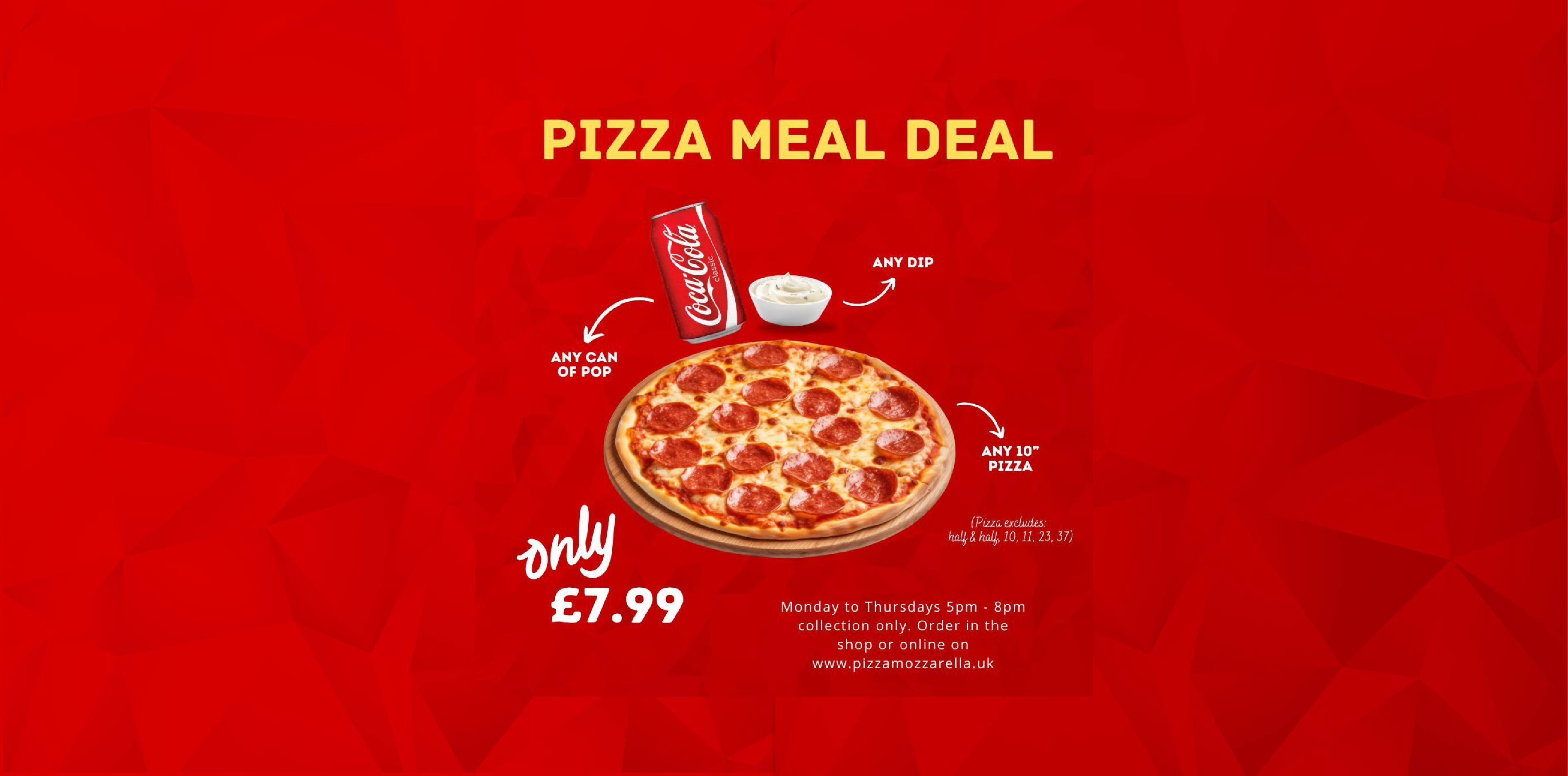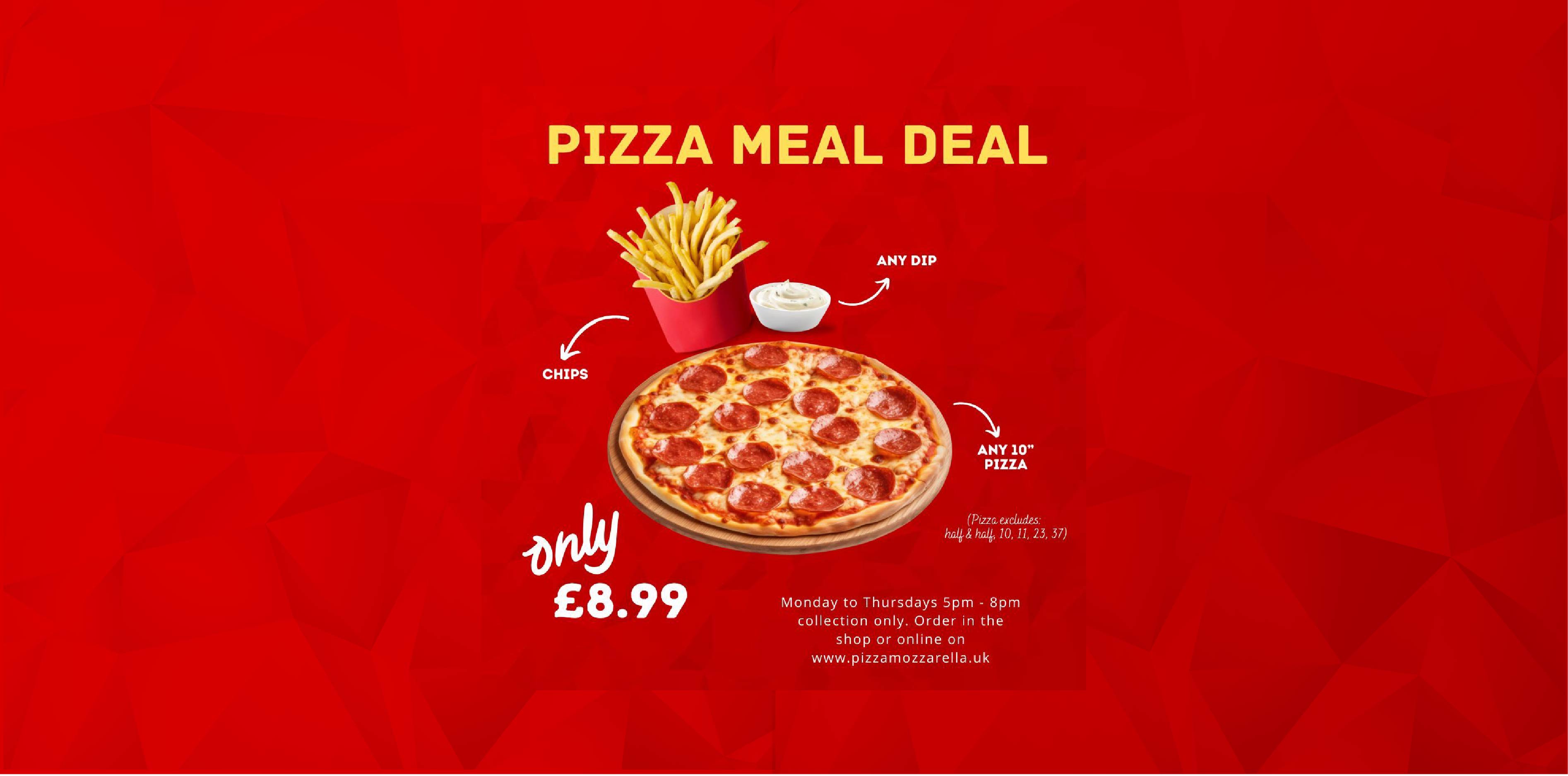 Welcome to the official website Pizza Mozzarella! On our website you will find our complete takeaway menu, always up to date with the latest prices and choices, including our special offer meal deals. Our website is easy to order from for collection or delivery! Simply choose your items and add them to your basket, then checkout!